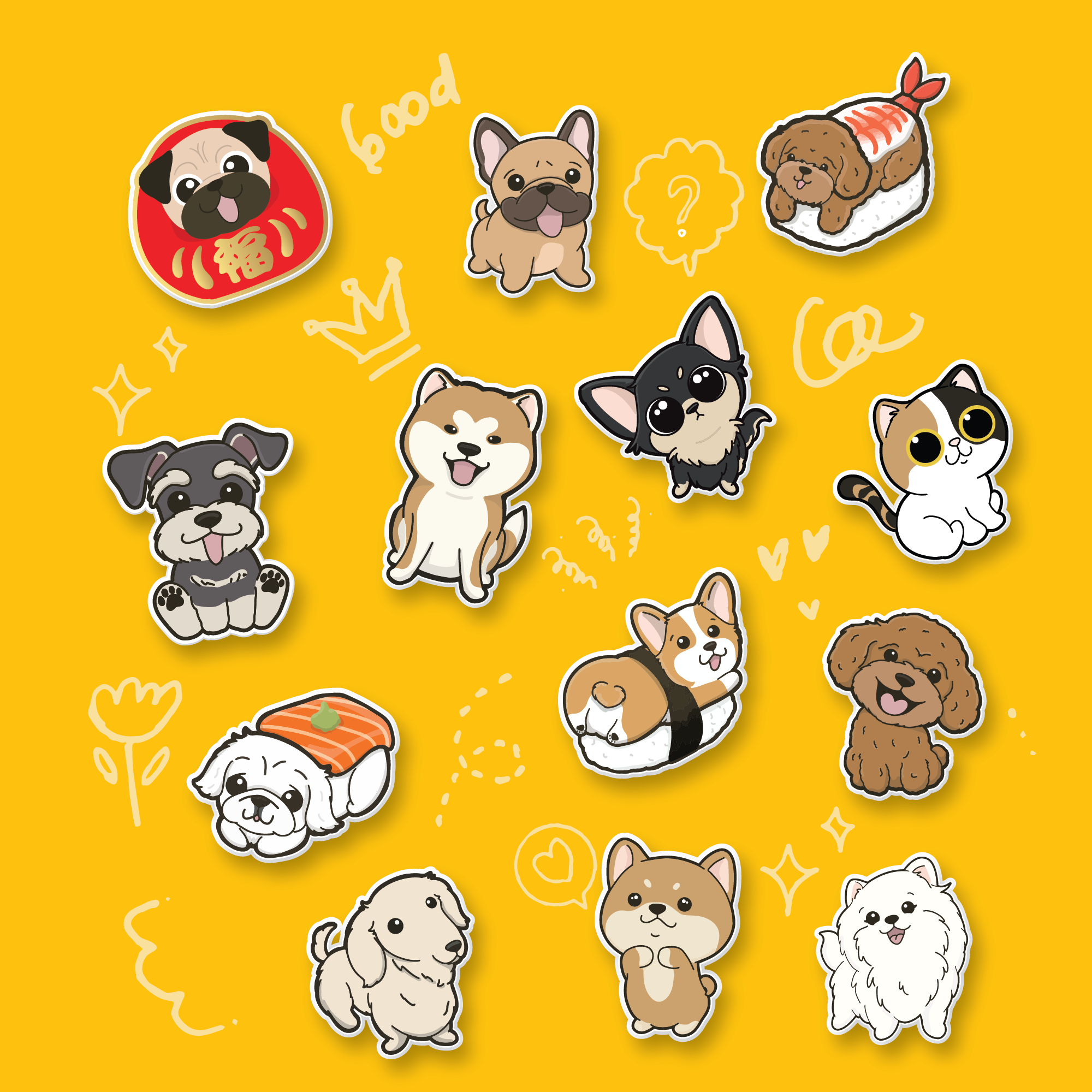 Dog Stickers Mike & Friends Cute Dog Illustration Waterproof Vinyl Sticker