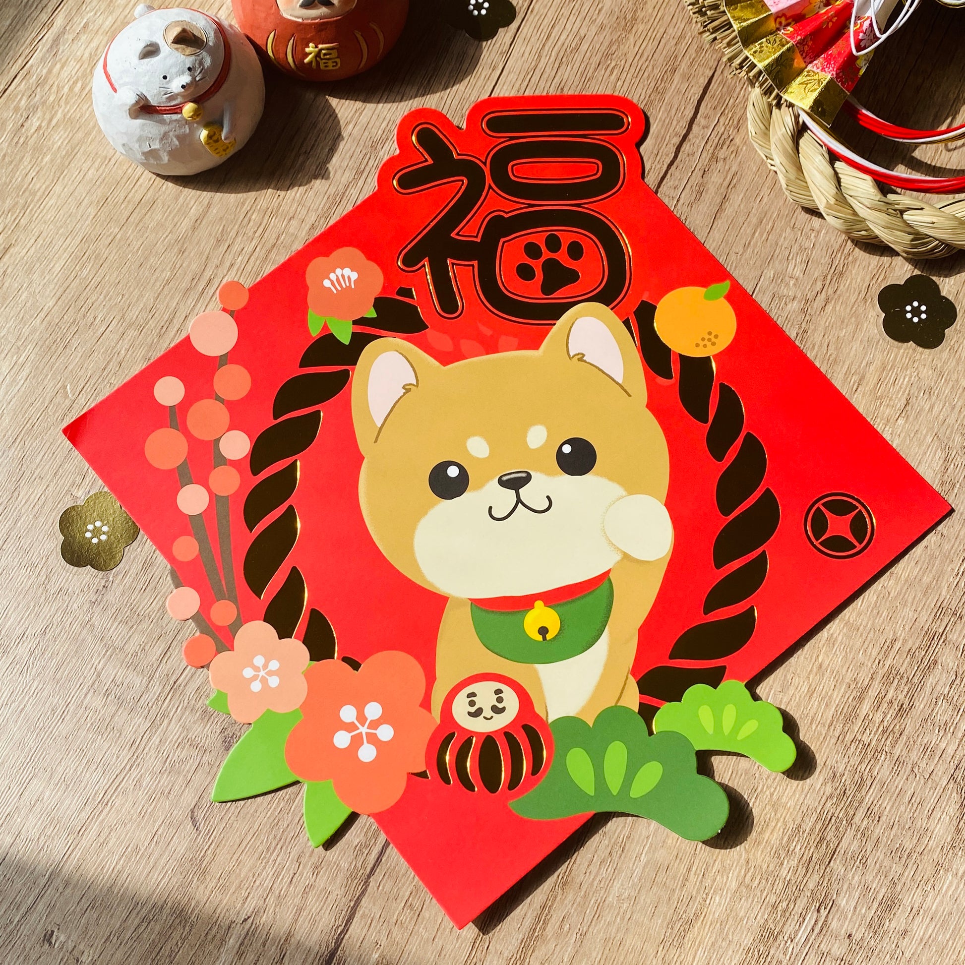 [2026年旧正月] 柴犬金箔四角連句(飛春) - Pawsome Islandによるオリジナルイラスト